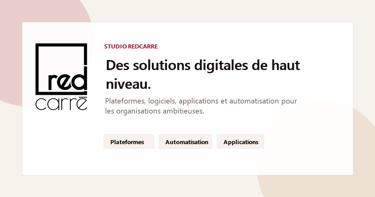Studio Redcarre conçoit des plateformes, logiciels, applications et systèmes d'automatisation